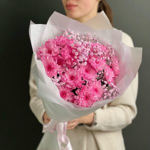 Популярное 🔥 Букет “Новогодняя мята” с хризантемой и гипсофилой